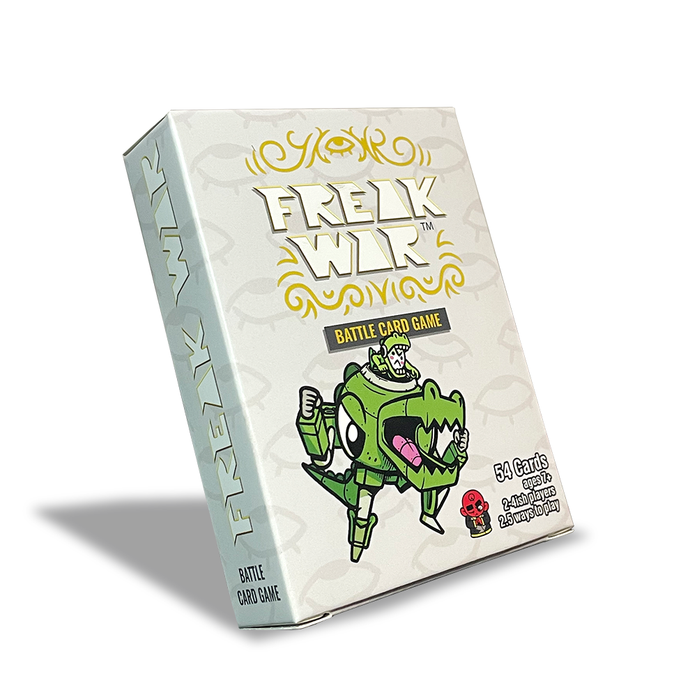 The 54 card White Starter Deck - full of unique Creature and Modifier cards. This is all you need to play a game of Freak War with as many participants as you like, or use it to face off against other Freak War players! (see sketchnate.com/freakwar more info)